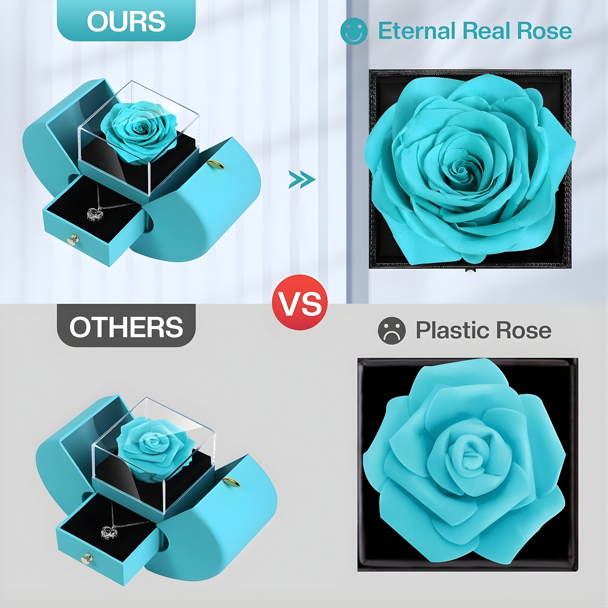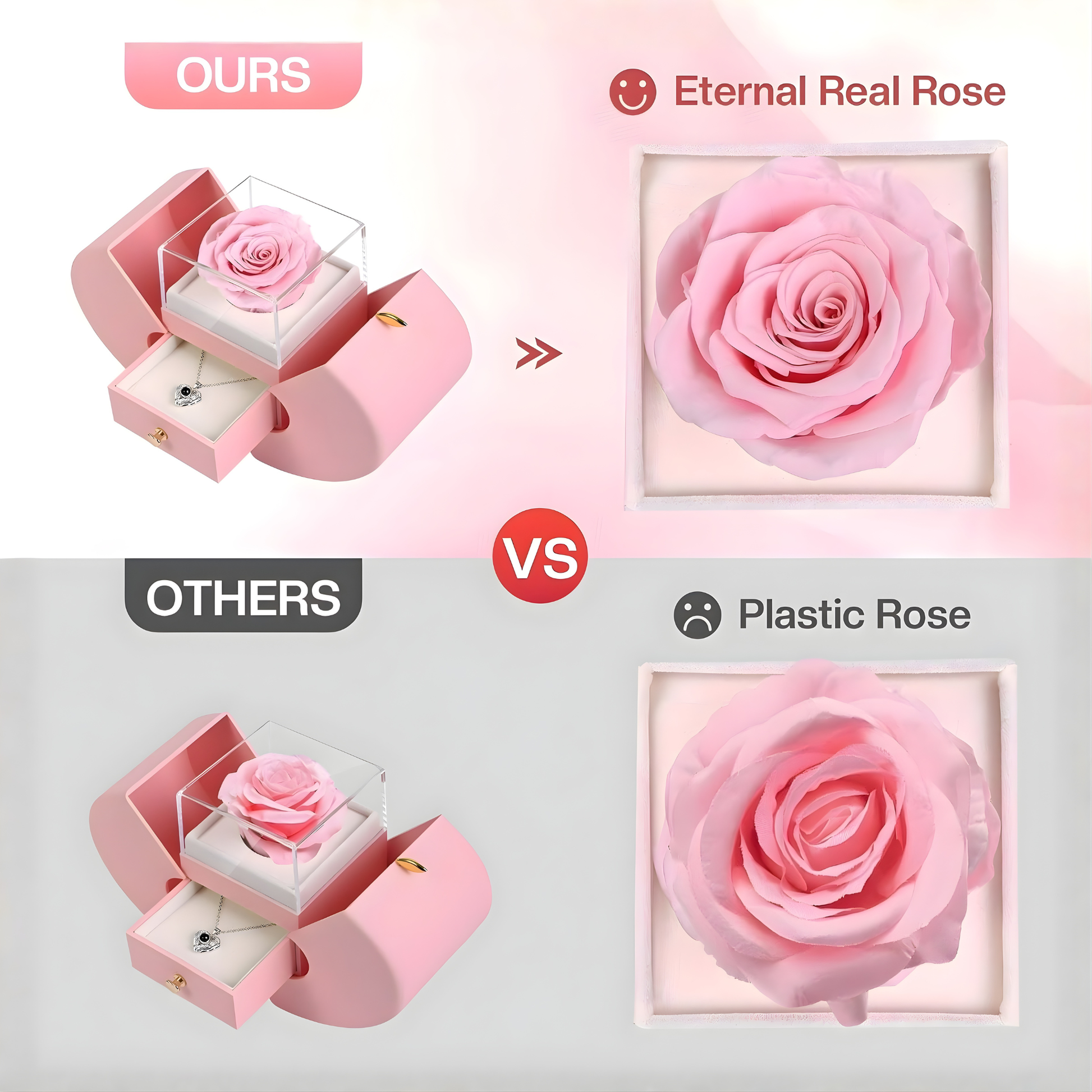 Desde la presentación de la caja (perfecta para regalar) hasta el collar y la rosa real preservada, este producto es absolutamente precioso. Por el precio, no se puede mejorar. Es una gran compra, mejor que los regalos típicos que he visto en los centros comerciales.