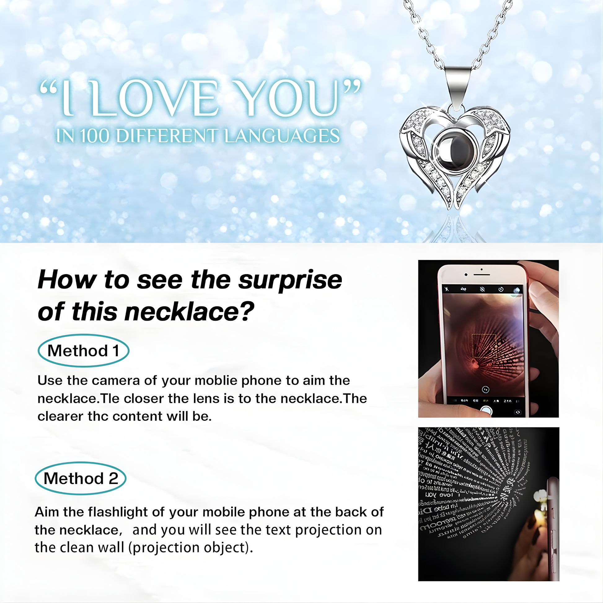 - 💌 Collar con “I LOVE YOU” en 100 idiomas: un detalle romántico y único para sorprender.